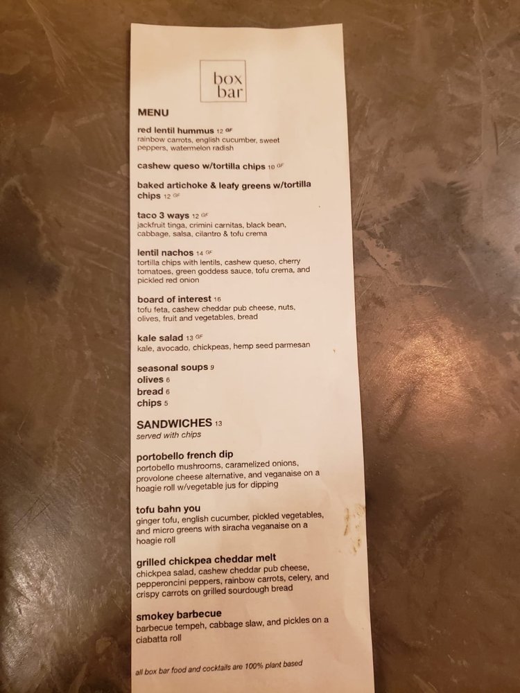 Introducing the menu at Box Bar, a vibrant spot in Seattle offering a variety of tacos and sandwiches. This women-owned establishment not only provides a diverse range of vegan and vegetarian options but also focuses on sustainability with compostable containers and plastic-free packaging. From flavorful curry tofu ramen to innovative buffalo cauliflower mac and cheese, the menu showcases creative and delicious dishes. Don't miss out on their signature jackfruit carnitas tacos, served with a side of pineapple habanero salsa for a perfect balance of flavors. With a relaxed and casual atmosphere, Box Bar is the perfect place to enjoy a meal with friends or family. Experience a feast for your taste buds while supporting a business dedicated to providing a memorable dining experience.